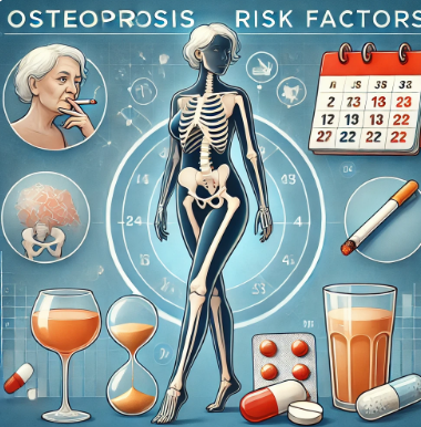 • 일차성: 노화로 인한 자연 발생, 폐경 후 급격한 골밀도 감소, 노인성.