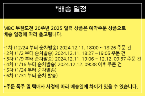 2025 무한도전 20주년 달력은 현재 교보문고 핫트랙스 온라인몰 에서 사전 예약 중입니다.
