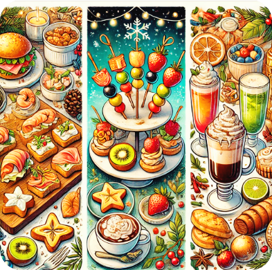 - 카나페: 바게트 위에 크림치즈, 훈제 연어, 허브를 올리면 간단하면서도 고급스러운 핑거푸드가 완성됩니다.
