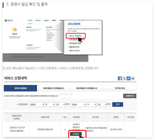 5. 발급 신청 및 출력